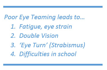 During such an evaluation, one or more of these eye teaming conditions may be diagnosed: