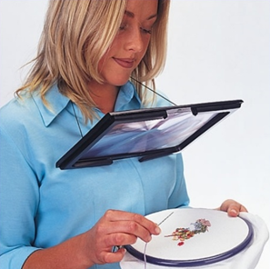 19. HOBBY MAGNIFIER For intermediate distances. These are sometimes called 'knitting magnifiers' but are useful for much more than just knitting. This magnifier is large and wraps around your neck so that you can better see your hobbyist activity. It is hands-free. Because they only provide a 1.75X magnification, they are only for patients with a mild or moderate impairment. Prices can range greatly by quality, from $50 to $300.