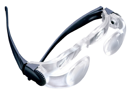 22. MONOCULAR MICROSCOPIC SPECTACLES For reading. These glasses are so extremely powerful that they are best used through one eye at a time—which is why the reading power is only in one eye. These are great for people with severe visual impairments but can be cumbersome: Although they are hands-free, the user must hold their reading material extremely close in order to see it with these incredibly high-power lenses. Magnification ranges from 4X to 7X. Prices vary.