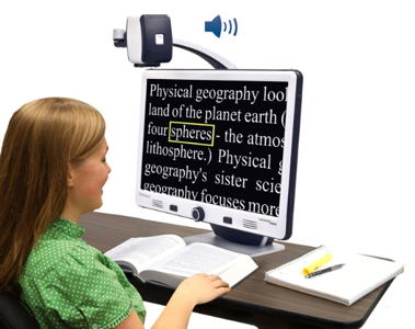 14. ZOOM TWIX NEAR & FAR LAPTOP MAGNIFIER For students, distance and near. This is the perfect device for high-intensity students who want to get through school without drawing unnecessary attention or asking for special help. By utilizing your laptop screen as a monitor, the Zoom Twix compacts a traditional CCTV into a very small portable device that can be quickly set up in the classroom. Battery-powered. The real magic of the Zoom Twix is that the camera can be aimed at both distance or near. Simply twist the head of the device, and you can quickly see what your professor is writing on the board, then twist it back to your book to follow along with your class. Price is comparable to other CCTVs.