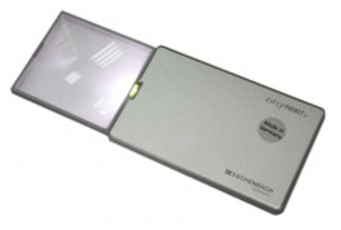 12. FRESNEL PORTABLE/SLIDE OUT MAGNIFIER For short-term reading. These portable hand magnifiers sacrifice quality of vision for portability. For young, on-the-go people, this is a must-have item. Great for grocery shopping and reading menus at restaurants. By utilizing Fresnel technology, this hand magnifier is extremely lightweight, flat, and portable. This item is discreet and fits perfectly in a purse, making it ideal for independent women. My favorite type of portable hand magnifier is the Easy Pocket LED Portable Magnifier. Remember that the optical (image) quality will not be as good as a traditional hand magnifier. Costs vary.