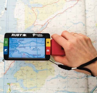 For short and long-term reading. The Ruby Pebble is a versatile electronic portable magnifier with easy-to-see buttons. Like many other electronic hand magnifiers, it can be placed directly against a page to act as a stand magnifier, or you can twist out the handle and use it as a hand magnifier. This is an electronic device and is made to be easy to operate, but some older patients may have difficulties. Price ranges from $500-$1,000.