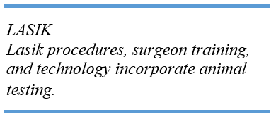 We provide our patients with the highest quality products, but we are also conscious of our patients' financial needs and moral convictions. Many eye care products are tested on animals. Like most tests for drugs and medical devices, these tests are typically performed on rabbits.